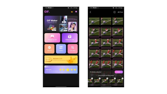 GIF Maker - Video To GIF هو تطبيق جوال متعدد الاستخدامات يحول صور GIF الخاصة بك إلى مقاطع فيديو GIF لطيفة وعصرية وممتعة، مع ملصقات ومرشحات وأدوات تحرير لتحسين تجربة GIF الخاصة بك. بالإضافة إلى ذلك، يمكن استخدامه أيضًا لعكس صورة GIF الخاصة بك، وإليك الطريقة.