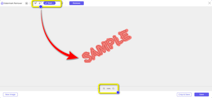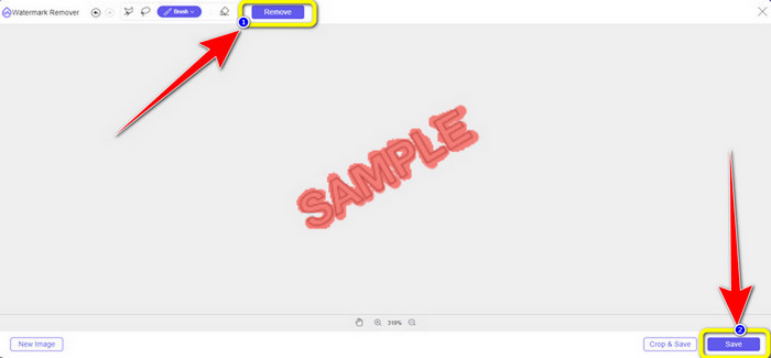 Paso 3: Cuando haya terminado de resaltar las marcas de agua con la herramienta Pincel, haga clic en el Eliminar botón para eliminar las marcas de agua. Después de hacer clic, puede esperar un segundo para el proceso de eliminación y hacer clic Salvar.