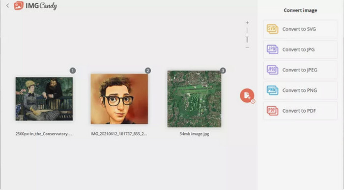 یکی دیگر از مبدل های تصویری مفید آنلاین که می توانید امتحان کنید این است آب نبات تصویری. این برنامه از بسیاری از فرمتهای تصویر پشتیبانی میکند و میتواند عکسها را تا اندازه ۲ گیگابایت تبدیل کند. استفاده از این مبدل نمی تواند ساده تر باشد. پس از آپلود تصاویر در وب سایت، از بین فرمت های خروجی پشتیبانی شده انتخاب کنید. در صورت لزوم هر یک از آنها را بچرخانید. این یک مبدل آنلاین است. بنابراین، بر روی هر سیستم عاملی کار می کند. شما می توانید هر فایل تبدیل شده یا همه آنها را در یک آرشیو ذخیره کنید. این مبدل تصویر از حریم خصوصی شما نیز محافظت می کند. دو ساعت پس از تبدیل عکس های شما را از بین می برد. با این حال، فقط آپلود از دستگاه ها را می پذیرد. فقط چند فرمت خروجی وجود دارد.