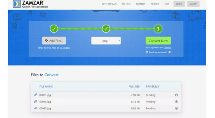 یکی دیگر از مبدل های آنلاین موثر تصویر است زامزار. خوب است که می توانید تصاویر تا اندازه 50 مگابایت آپلود کنید. همچنین می توانید یک فایل تصویری را از رایانه، Dropbox، Drive یا وب سایت دیگری با وارد کردن URL آن آپلود کنید. این ابزار رابط کاربری ساده ای را ارائه می دهد که آن را برای همه کاربران قابل دسترس تر می کند. با استفاده از این نرم افزار می توانید تصاویر را با فرمت های CR2، ARW، PNG، 3FR، JPG، GIF، ERF، TIFF و ... آپلود کنید. همچنین میتوانید فایل تصویر خود را به فرمتهای مختلف تبدیل کنید تا برای همه کاربران آسانتر شود، از جمله BMP، EPS، PDF، PNG، JPG و WBMP. اما فرآیند تبدیل بیش از حد طول می کشد. علاوه بر این، نمی توانید عکس های تبدیل شده را ذخیره کنید. علاوه بر این، شما می توانید حداکثر دو عکس را در هر جلسه تبدیل کنید.