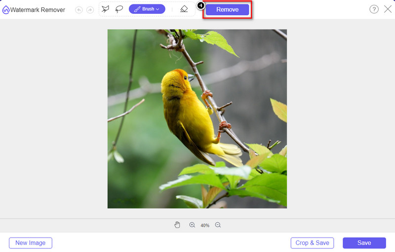 Step 4. Click the Remove button to erase the watermark and see what it would look like before exporting the image.
