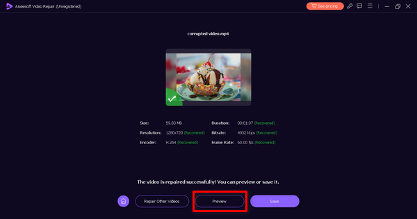 Al termine del processo di riparazione, fare clic su Anteprima per verificare il risultato.