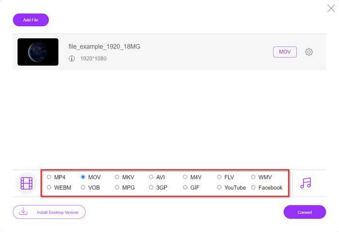 FVC Free Video Converter Online의 도움으로 온라인에서 XviD 파일을 MOV 형식으로 변환하는 방법에 대한 단계;